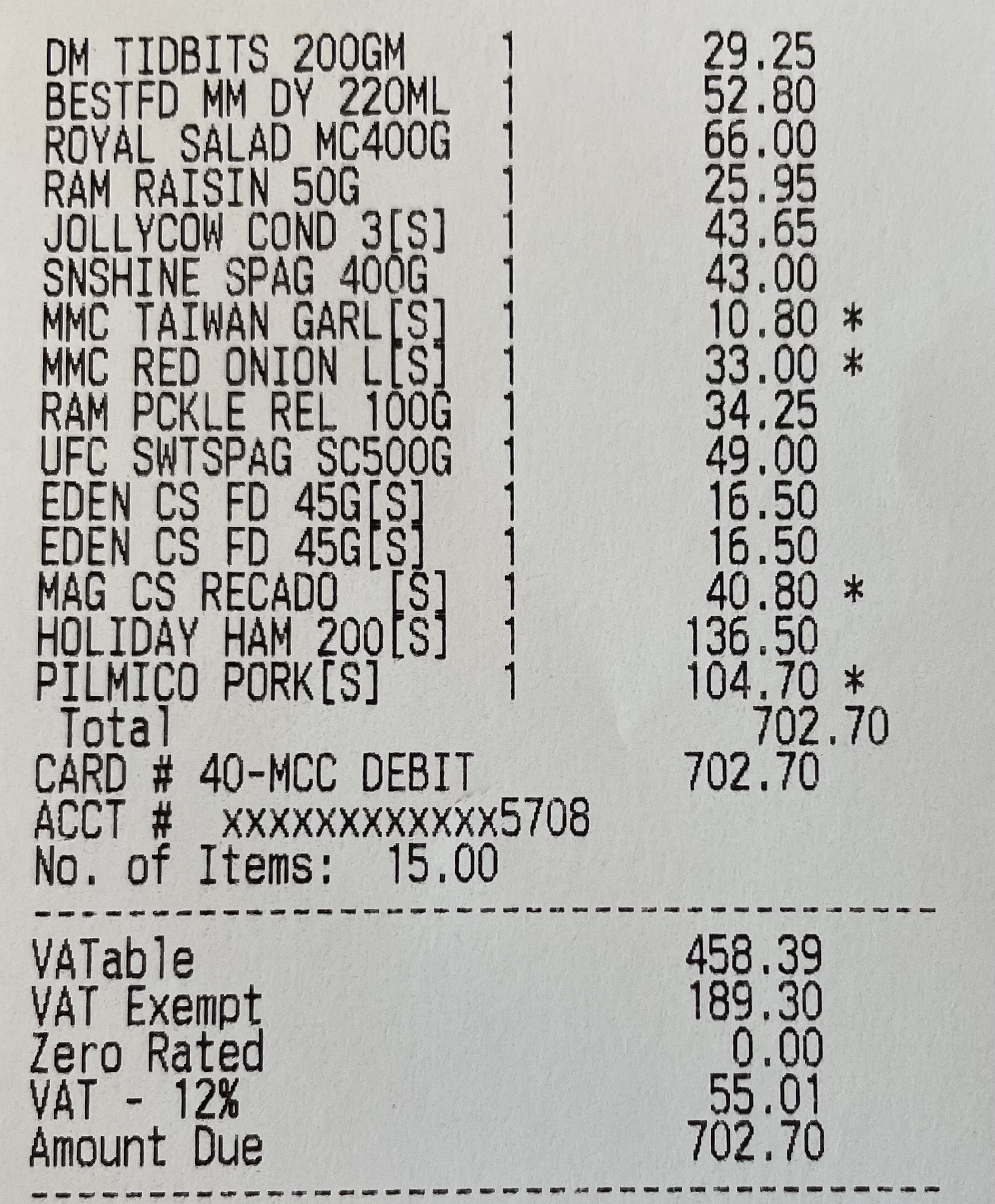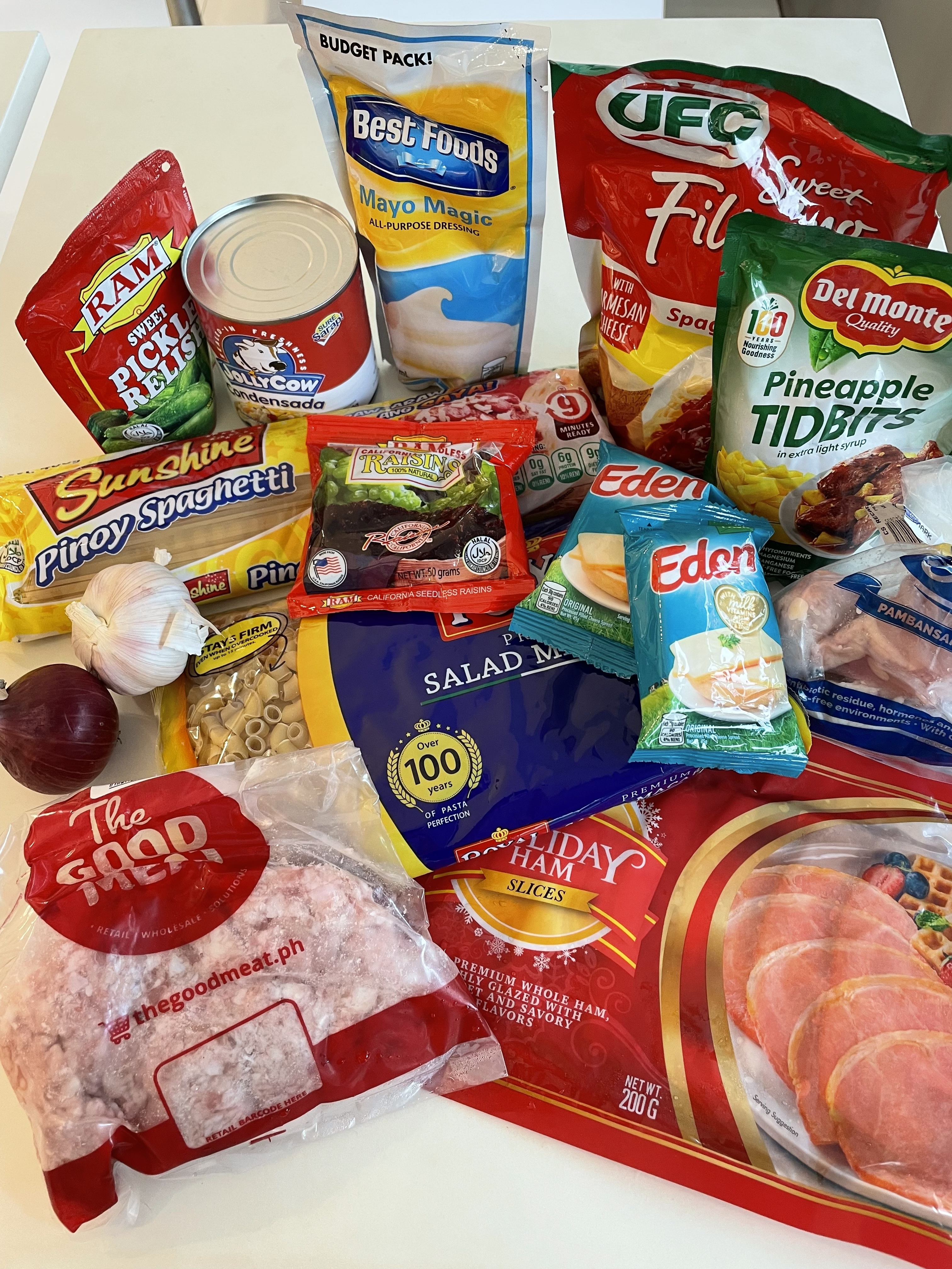 Without the canned goods, and just the Christmas ham, spaghetti, pan de sal, and fruit salad, the total would be just P374.50.