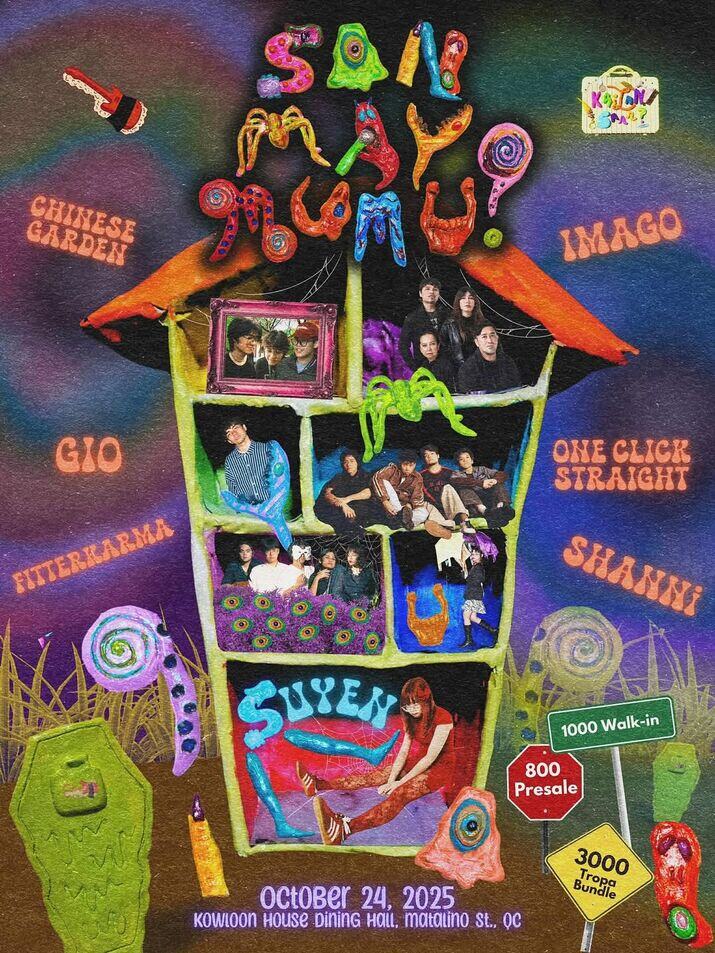 Kailan Saan and Musubi Productions are turning Kowloon into a haunted gig haven with SAN MAY MUMU?, a Halloween-themed OPM showcase featuring SUYEN, One Click Straight, Imago, fitterkarma, SHANNi, Gio Caindec, and Chinese Garden.