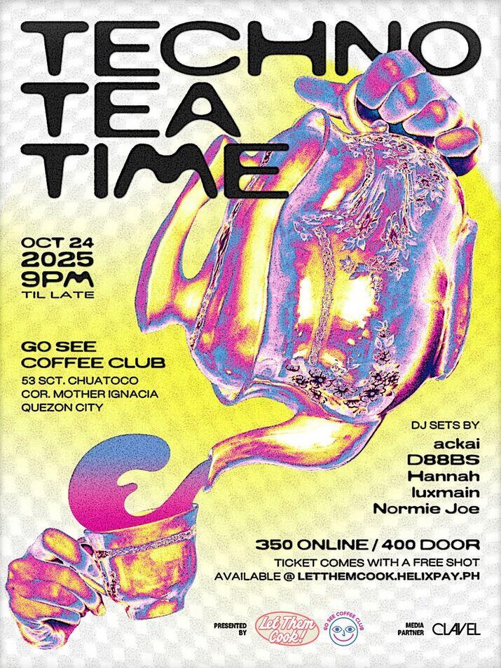 Let Them Cook returns with a caffeine-fueled techno rave at Go See Coffee Club in Quezon City. Featuring DJ sets by ackai, D88BS, Hannah, luxmain, and Normie Joe, this late-night party blends beats and brews in true underground fashion.