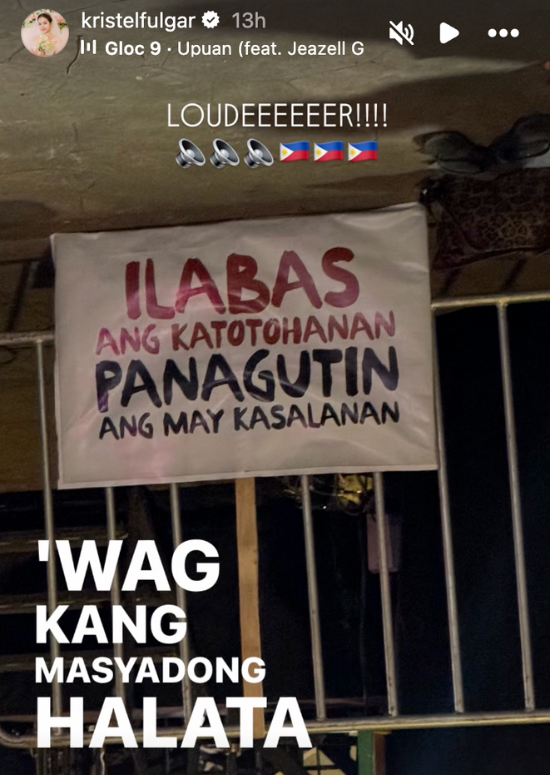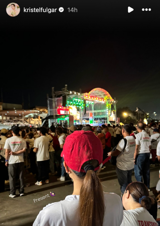 Former child actress and content creator Kristel Fulgar was also present during the first day of the rally. In her Instagram stories, Fulgar shared a photo of herself facing the stage with the text, "present."