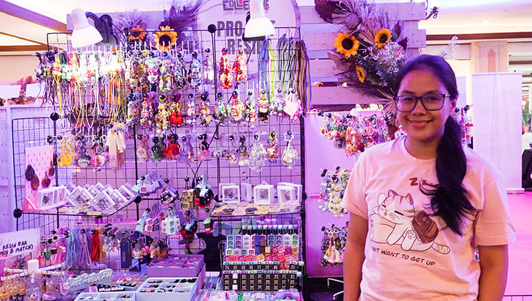 Corazon Saraspi, owner of Project Resin and another first-time merchant, showcased her resin art: “Gusto kong mabuhay ang resin handicraft sa community para maitaguyod ang Filipino craftsmanship at makatulong na rin sa kapwa kong resin artists.”