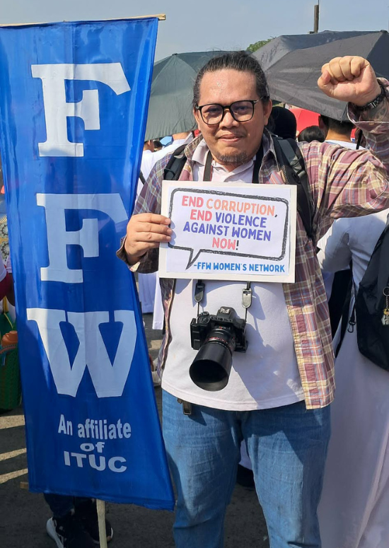 For that reason, he has always been active in promoting workers' rights and advocating for the democratic ideals the 1986 uprising stood for. He currently works as an organizer and educator for a labor group known as the Federation of Free Workers.