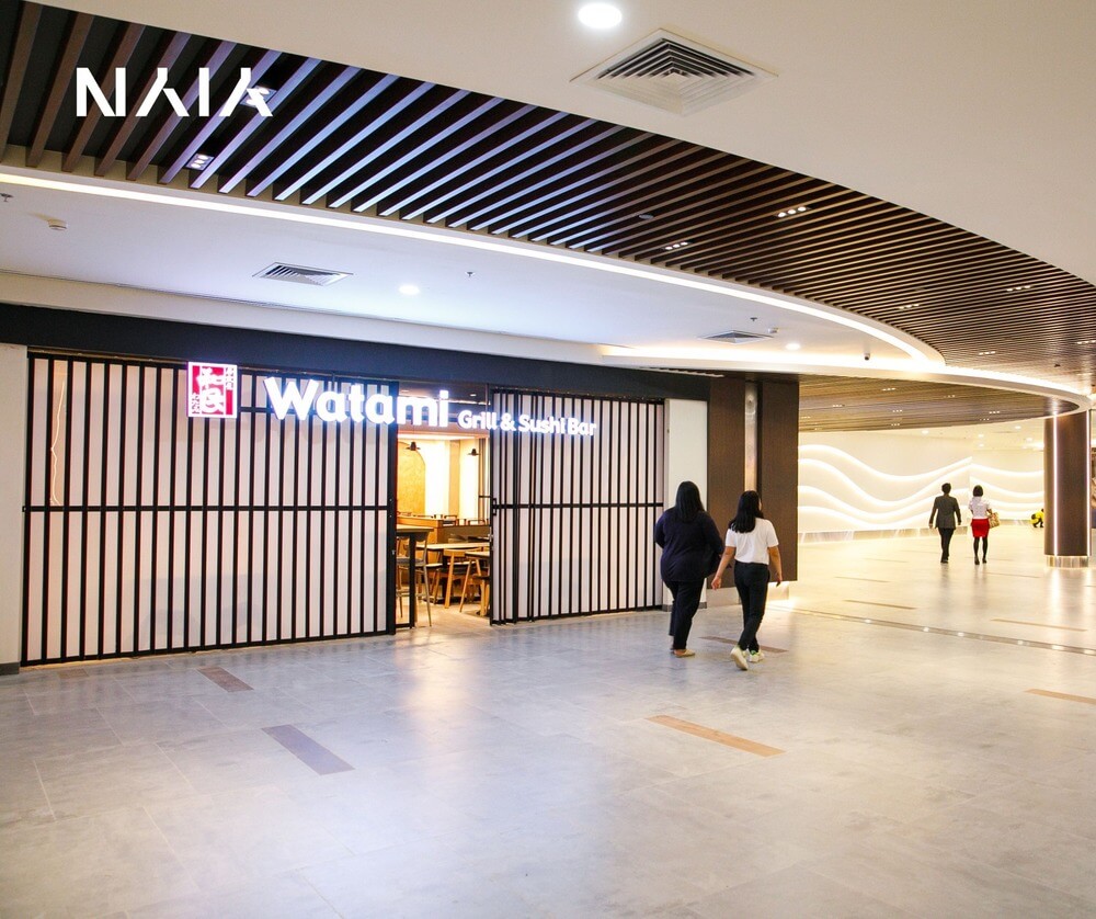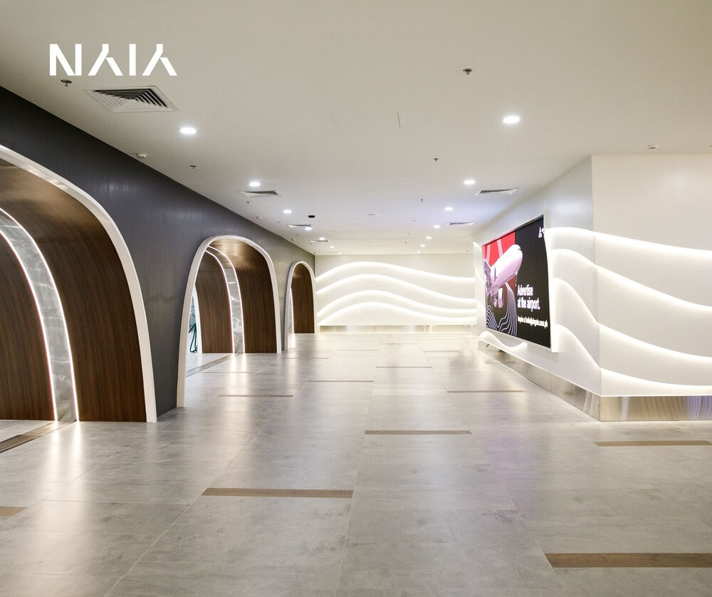 The airport shared a glimpse at its 6,000 square-meter Mezzanine Food Hall on its Facebook page, showing a sleek, contemporary vibe with wave-like lighting and neutral tones of cream, gray, and wood accents.