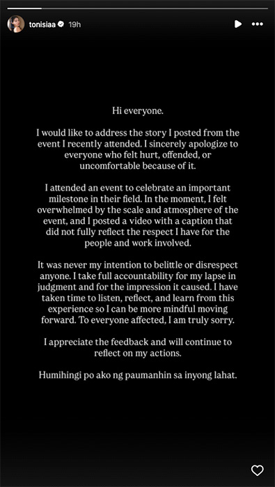 Influencer Toni Sia, who posted the viral photos in her Instagram story, has also expressed regret in a follow-up story.