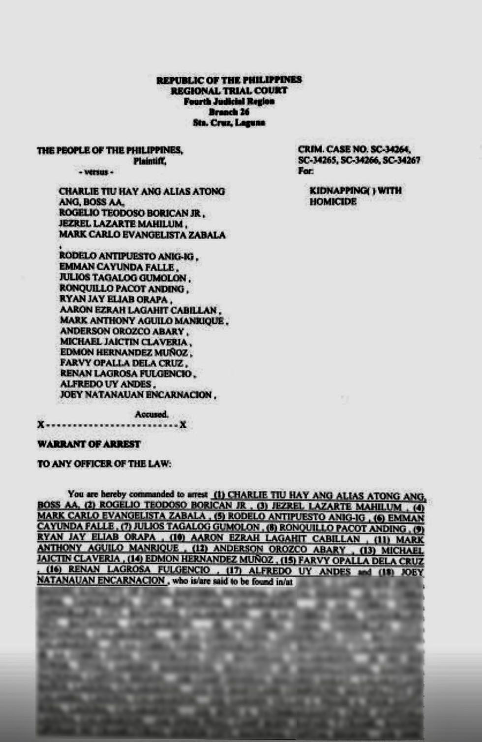 A warrant of arrest has been issued against Atong Ang and 17 others over the missing sabungeros case.