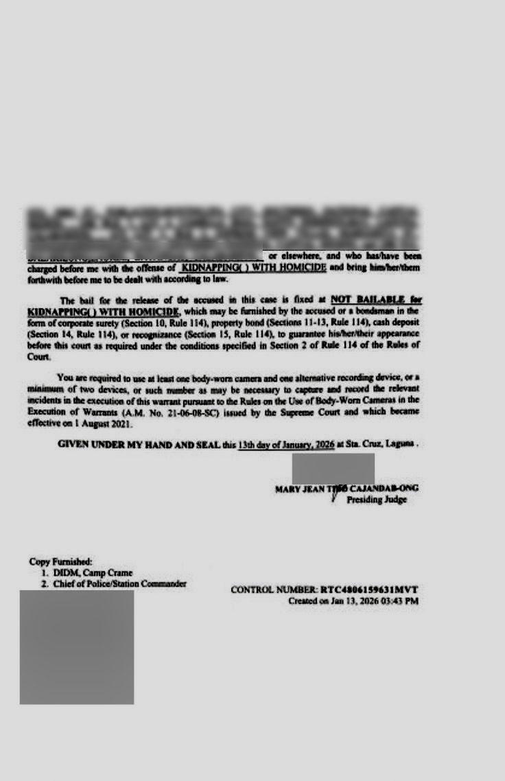 The Philippine STAR reported on Wednesday, Jan. 14 that the Regional Trial Court Branch 26 in Sta. Cruz, Laguna has ordered their arrest.