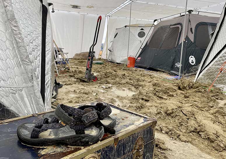 Desert rain leaves thousands stranded in muddy mess at Burning Man