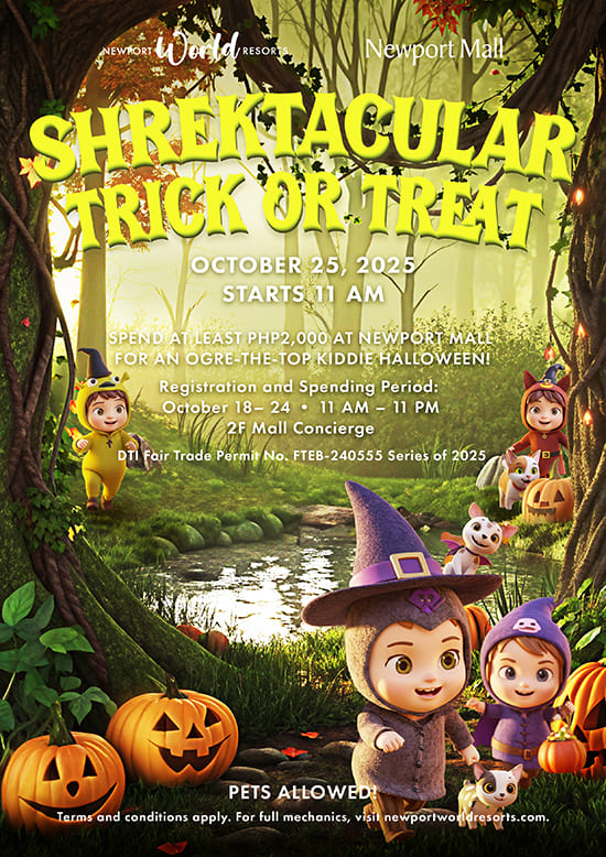 Priced at P3,600, the afternoon includes family-friendly highlights such as trick-or-treat, a balloon pit, movie screening, face painting, and a roving photographer, capped by a costume contest offering a chance to win “Shrek The Musical” tickets for two.