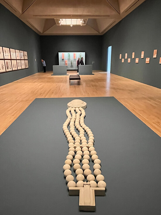 “To Those Sitting in Darkness” recreates Abad’s exhibit at the Ashmolean Museum where he was invited to respond to the collections of Oxford institutions. The title references Mark Twain’s satirical essay, “To the Person Sitting in Darkness,” which exposed American imperialism in The Philippine-American War.