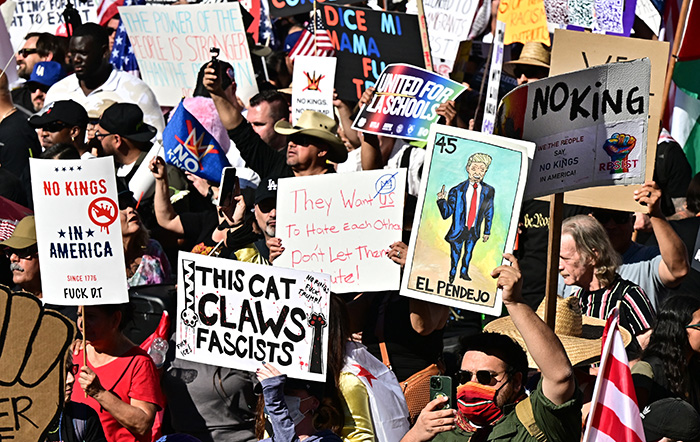 Huge crowds took to the streets Saturday in all 50 US states to vent their anger over president Donald Trump's hardline policies at "No Kings" protests that Republicans ridiculed as "Hate America" rallies.