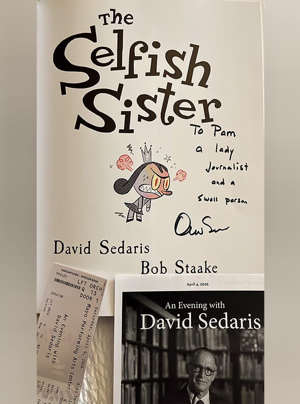 “David Sedaris Tonight at 8 p.m.!” read the electronic board outside the Mayo Performing Arts Center.