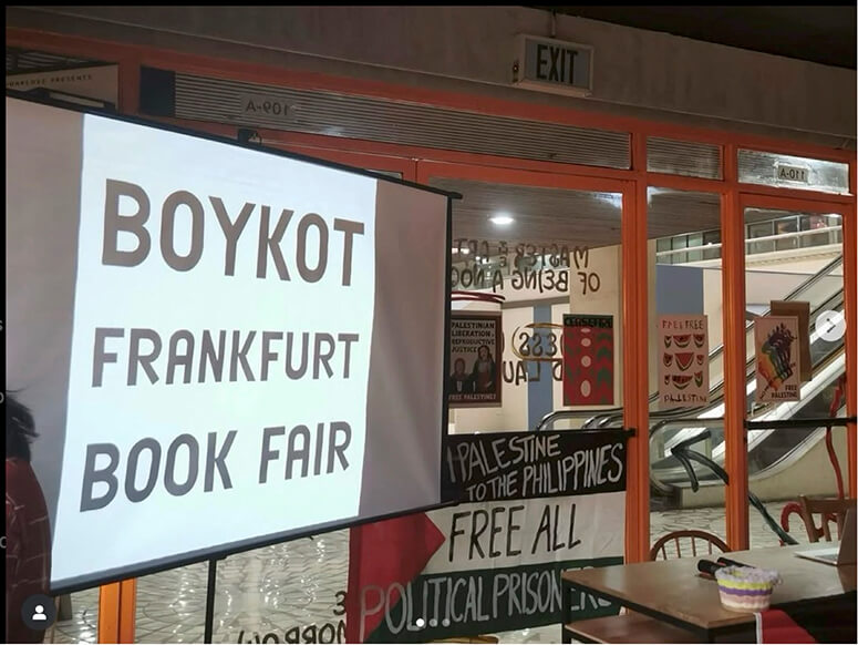Issues of complicity among artists and how they relate to institutions have been the subject of many critical works over the years. The recent debates brought these discussions again to the fore. The Buchemesse delegates lament the invisibility of Philippine literature on the “global” stage, thus insisting on attendance for the opportunity to put the country on the map. Meanwhile, boycotting writers and publishers argue that the fair is “instrumental” to the sanitizing of the Palestinian genocide. In a statement, Gantala Press pointed out how “cultural institutions are utilized by Israel and its allies in the deliberate, persistent and violent erasure of Palestinian identity and history.” Even by framing boycott as a legitimate response, the boycotters have already shifted the conversation toward a more empowered and critical perspective, at a moment when participation in the fair seemed almost inevitable and non-participation professionally impossible.