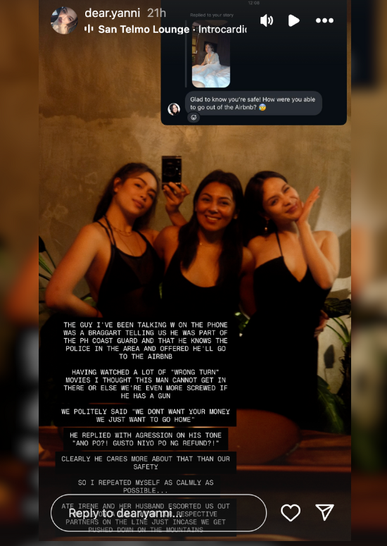 Vanessa Antonio, Yanni Collins share scary Airbnb incident in Tagaytay involving alleged intruder