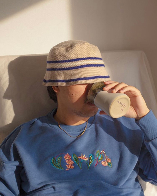 A love of flowers and expertise in creating its virtual forms is what brings octogenarian designer-turned-Instagram sensation Sylvia Borja and graphic designer and illustrator Raxenne Maniquiz together in a collaboration of plush sweaters. Raxenne creates a custom logo made of tropical flowers, moth orchid, bird-of-paradise, and hoya, spelling out “Owa,” the nickname Sylvia’s grandchildren have lovingly given her, meticulously embroidered at Sylvia’s atelier with decades of experience. Many brands have come up with their own take on leisurely sweats this year, but you can’t deny that Sylvia and Raxenne’s combined green thumb makes these the prettiest around. Owa Sweater Series 1 comes in Oat and Cornflower colorways.