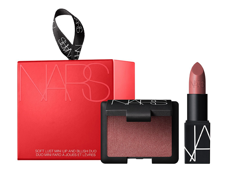 Thinking about what can fit inside your new mini bag? You don’t need extra gift-wrapping with this cute, exclusive ornamental packaging by Nars. It looks pretty hanging on your tree, but you’re going to love what’s inside. Swipe on the sweet life with the cutest, mini-size blush in matte dusty rose Dolce Vita and mini Lipstick in satin pink rose Tolède.