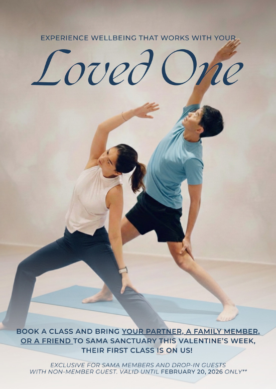 For the love month, Sama is inviting members to bring a loved one—whether a partner, friend, or family member—to practice together. First-time guests will enjoy their first class for free, giving them a space to breathe, move, and reconnect.