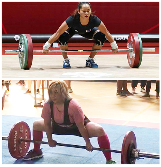 Weightlifting is for more powerful and speedy athletes like Hidilyn, who snatched 99 kg and clean-and-jerked 127. For a powerlifter, the lifting events are squat, bench press, and deadlift — which are not Olympic sports — but there are international powerlifting events as well.