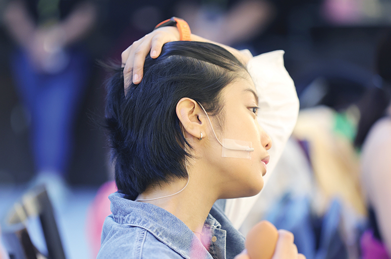 Wigs worn for over an hour. Layers of hairspray. Sweat from quick changes and stage lights. And outside the theater, daily commutes under the heat—helmets, traffic, and humidity all adding up.