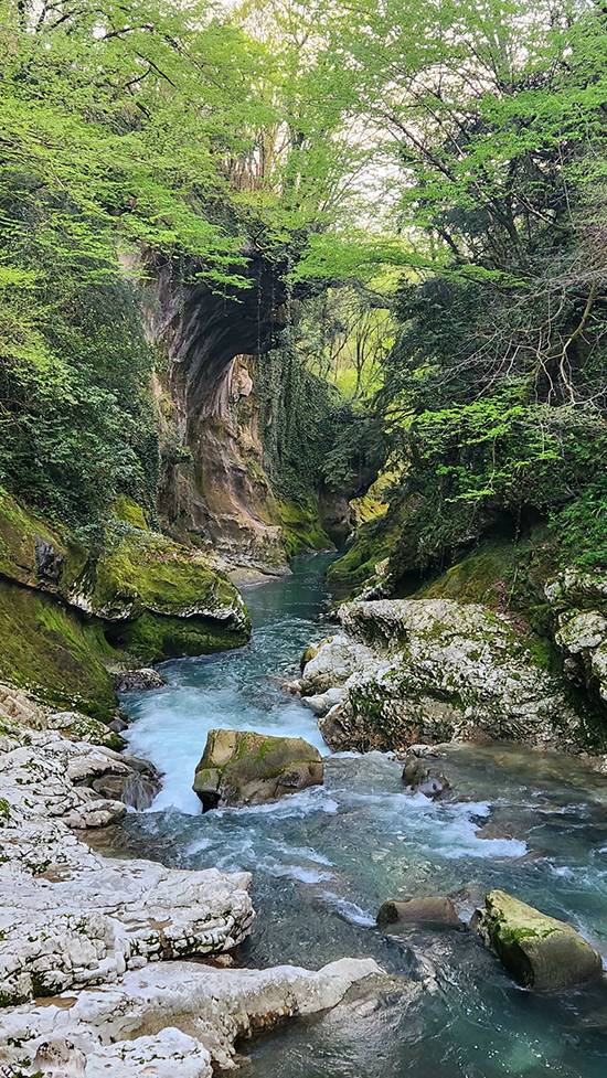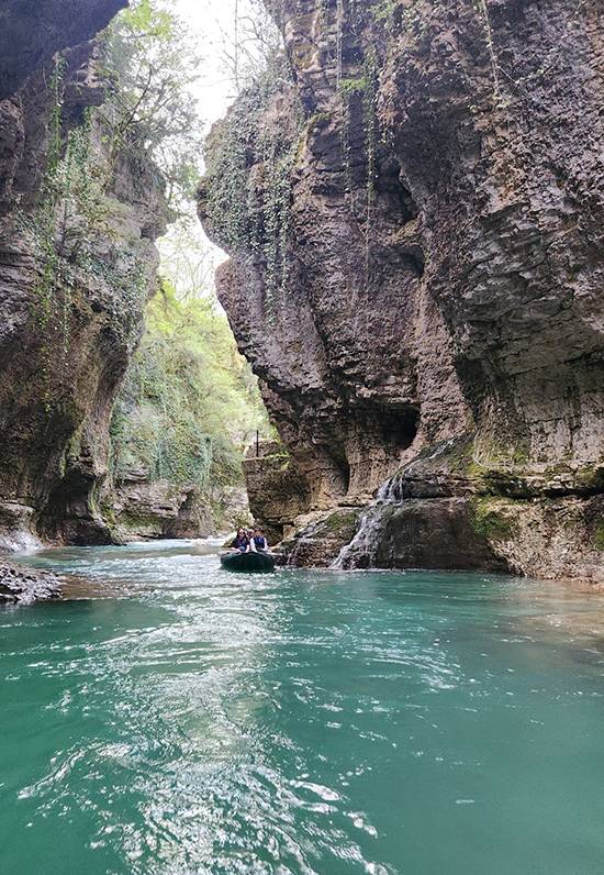 The drive to Martvili Canyon took about an hour, and we spent an additional 40 minutes walking and rafting through its pristine turquoise-green waters before returning to Batumi. Also called the Gachedili or Abasha Canyon Natural Monument, it is the very image of a gorge you usually only see in travel magazines and postcards. Adorned with seven breathtaking waterfalls cascading into the canyon, with the Abasha River flowing through it, it’s no surprise that it was once the secret bathing place of the noble Dadiani family in the 19th century.