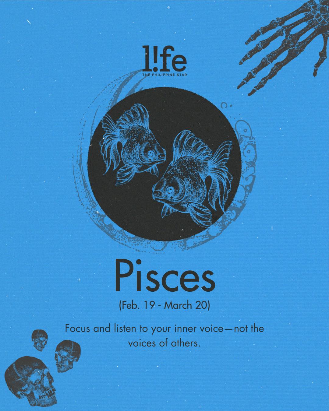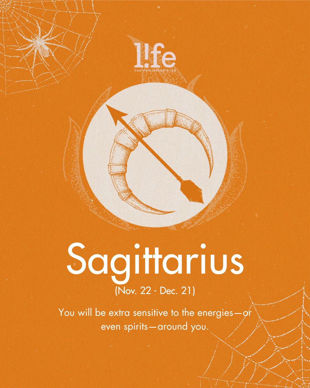You may feel anxious that your usual philosophical self seems to be on vacation. You will be extra sensitive to the energies—or even spirits—around you. Fortunately, your mind is still sharp. What you must do now is double-check your computations and commitments, as the line between your wishes and reality may be blurred.
