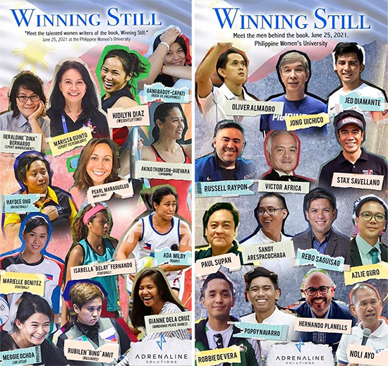 The result of the workshop is Winning Still, an upcoming book of essays by those athletes, including Olympians Hidilyn Diaz and Akiko Thomson, two-time billiards world champion Rubilen Amit, Jiu Jitsu World champion Meggie Ochoa, football star Jed Diamante, and coaches Jong Uichico, Sandy Arespacochaga and Haydee M. Ong.
