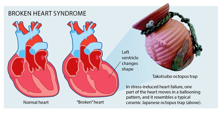 Broken Heart Syndrome was first described in Japan in the 1990s. The name takotsubo comes from a Japanese octopus trap—round at the bottom, narrow at the neck—which closely resembles the shape the heart assumes during the condition.
