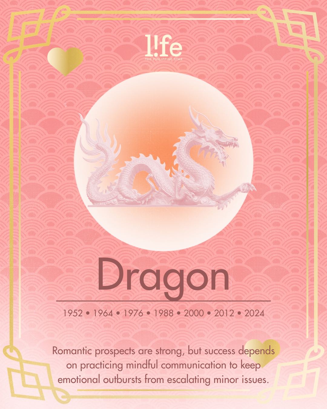 Dragons can also expect a wonderful period ahead. Your love luck energy is particularly strong, bringing in a wealth of blessings and great opportunities for singles looking to activate their romantic prospects. However, it is essential to practice healthy communication, as you may find it difficult to control your emotions at times. Stay mindful of your reactions to ensure that small issues or misunderstandings don't escalate into larger conflicts.