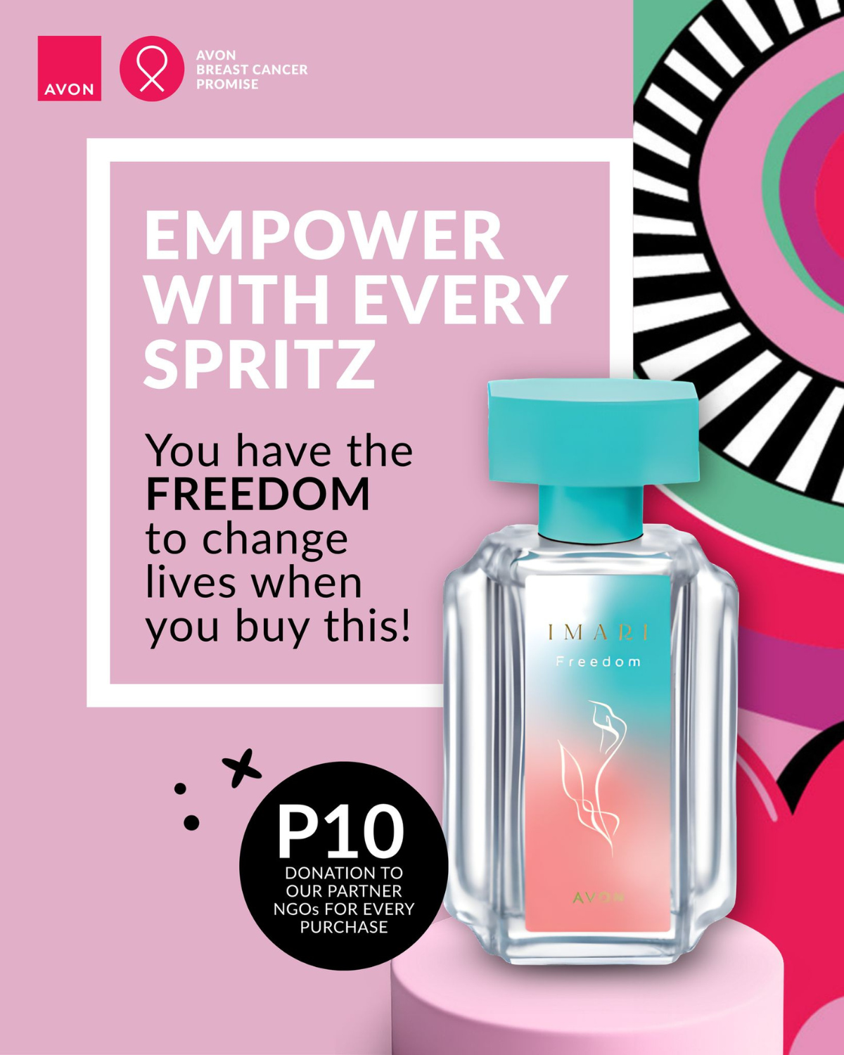 If you're hunting for a new perfume, try Avon Philippines' Imari Freedom. With every purchase, a P10 of it goes to its partner non-government organizations supporting breast cancer awareness and early detection programs.