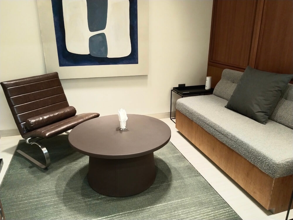 The clinic features three spacious rooms for clients, and each one has its own cozy waiting area and treatment space.