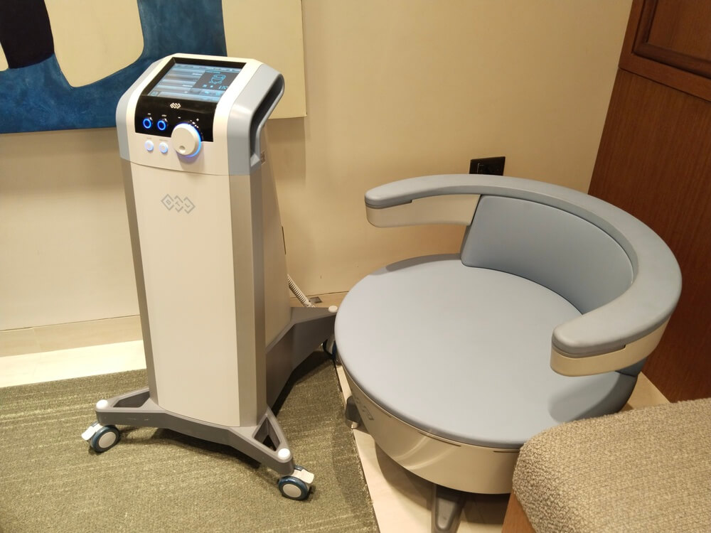 The first room houses their Emsella chair, a high-intensity electromagnetic seat that can help stimulate pelvic floor muscles.