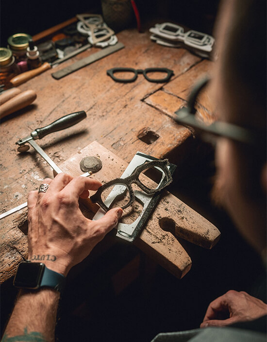 “Just as growing up in my mother’s shop inspired me with eyeglasses, living and growing up in a city of art and artisans influenced my choice to handcraft our glasses,” he says. “Paradoxically, for me, it was the simplest and most natural choice.”