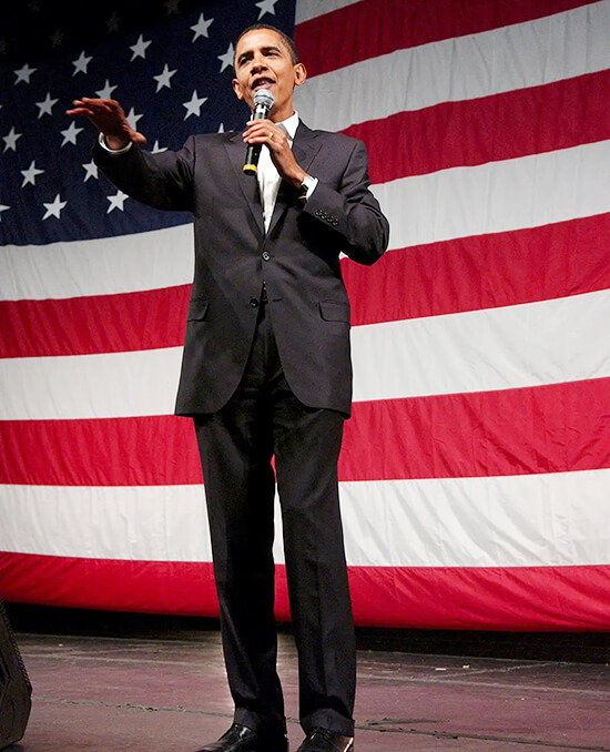 Four decades later, the couple would inspire president Barack Obama and Michelle Obama, whose term was described by fashion editor Robin Givhan as “Camelot with a tan.” Their version, however, is a deliberate, studied classicism updated with modernity and youth. He favors slim-fitting black suits that emphasize his lean, muscular frame while helping him stand out against the conventional blue suits on Capitol Hill.