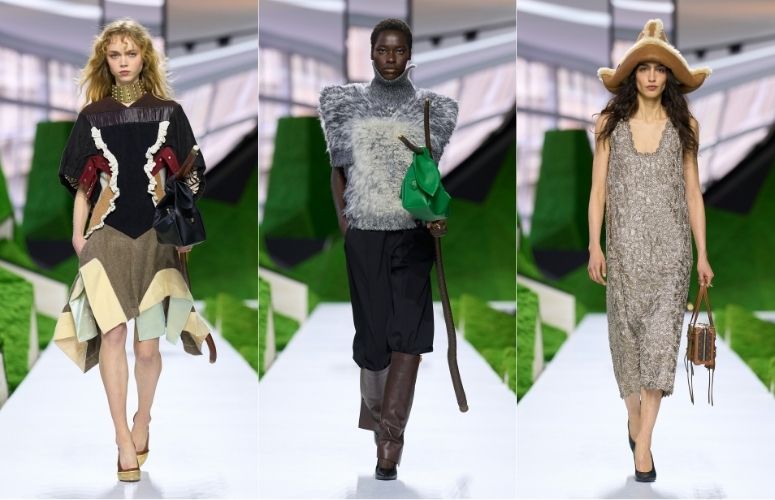 Technology played its part. Buttons looked like polished stones. Heels curved like antlers. Fabrics carried textures that hinted at fur, wood, and mineral. The result was strangely beautiful—organic, but slightly otherworldly, as though the landscape itself had been reengineered by artisans.