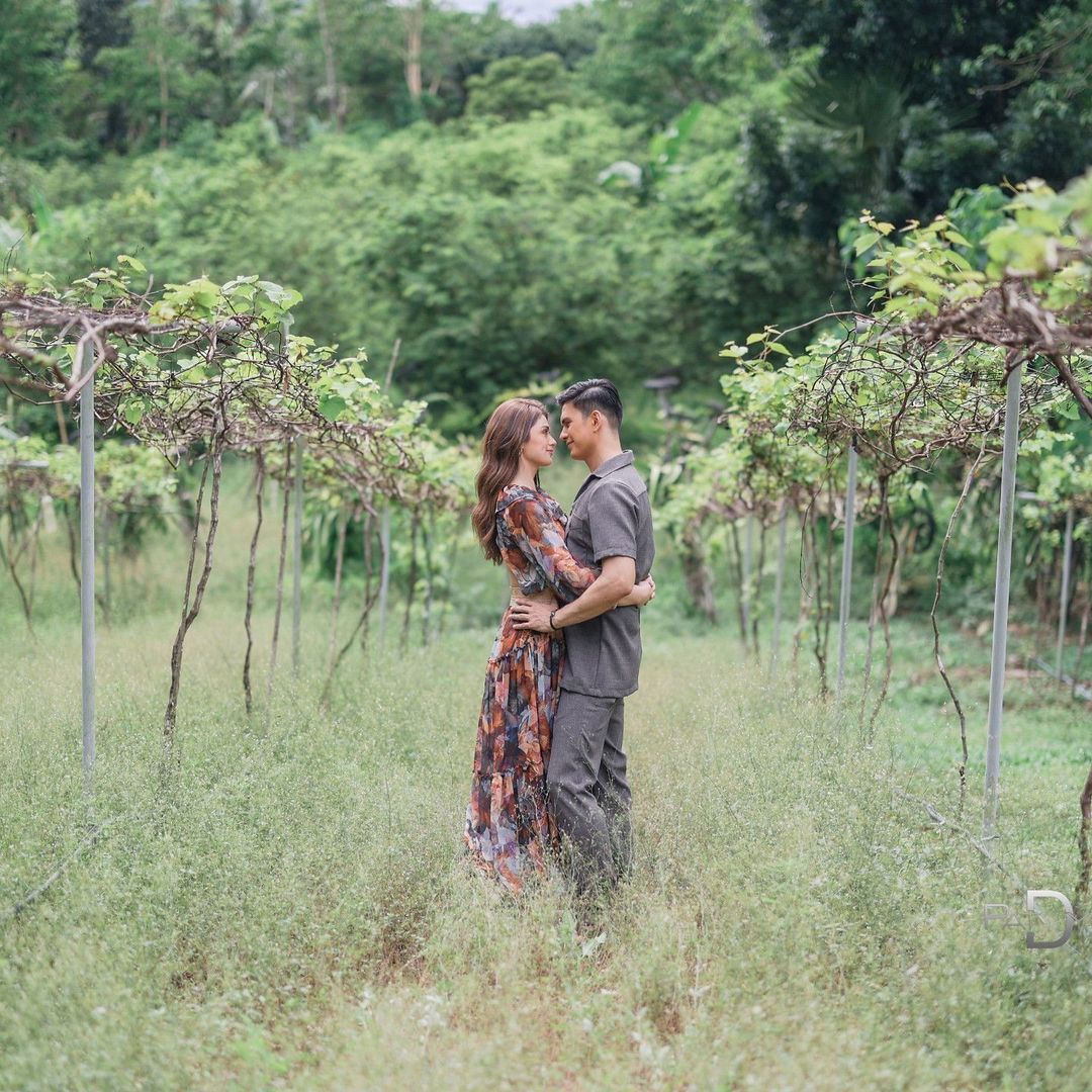 Photographer Pat Dy reveals on Instagram that looking for the "sweet spot" that matches the couple's vibe is very important in every shoot. If you recall, Dy took the prenup photos of Ellen Adarna and Derek Ramsey, which were released last week. From the moody and sensuous shots in the mountain, his team went to the fields at El Jardin De Zaida in San Juan, Batangas for a lighter, romantic vibe for Abellana and Rodriguez.