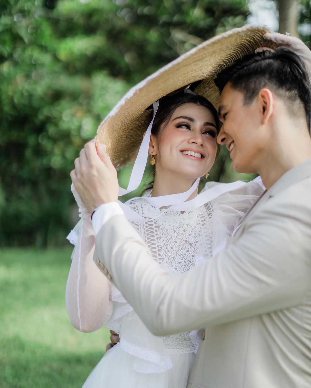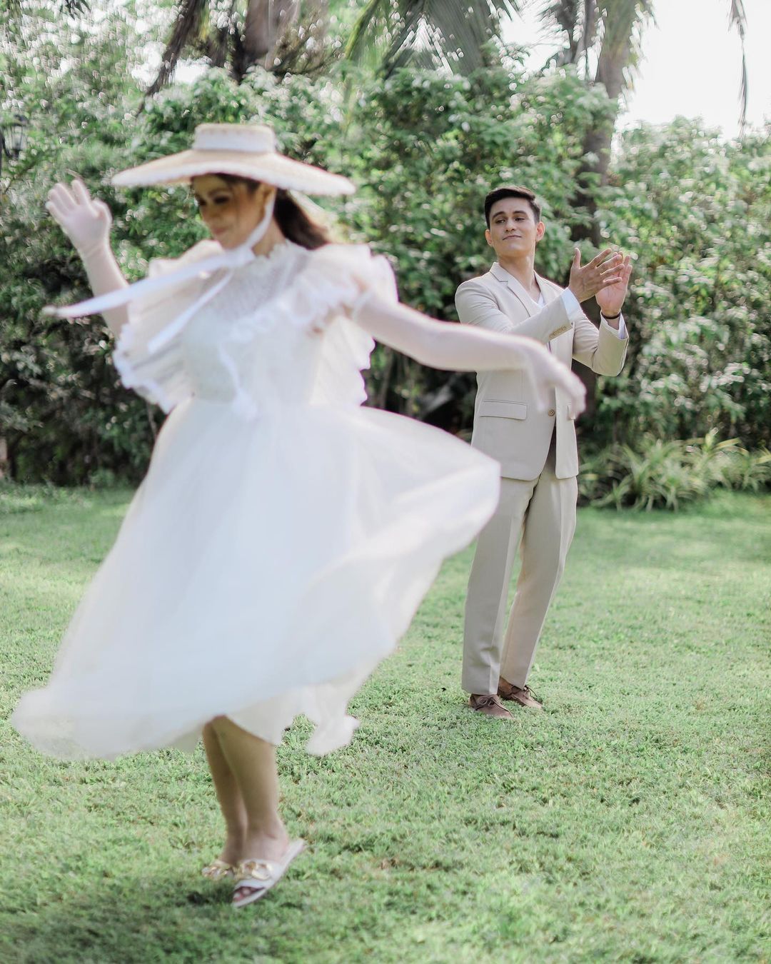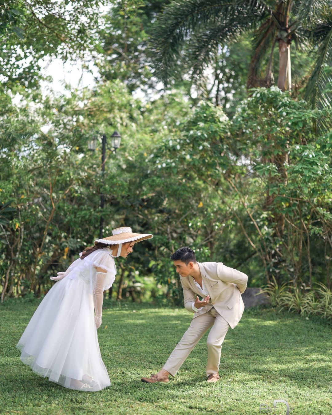 In one of their layouts, the couple kept it romantic and sweet. Abellana wore a Victorian-inspired lacy white dress with straw hat, while Rodriguez donned a beige suit.