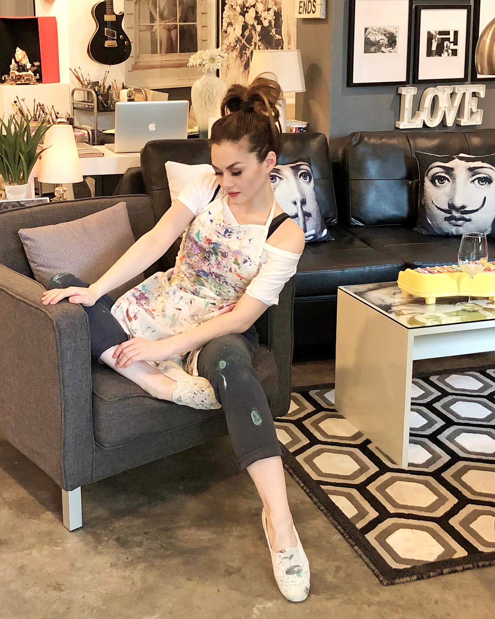 Sheltering in place in chez Maxine consists of high-waisted pants worn with sleeveless shirts, butcher’s aprons layered over leggings, micro-mini shorts as well as plenty of pink plaid PJs. She’s put together outfits for our newly DIY world, where you can’t be more overdressed than the repairmen who come in face-shields and PPEs. (Coveralls are a good choice since they can slip over more relaxed wear.)