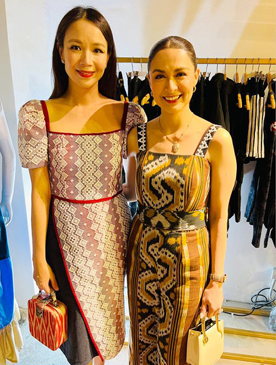 Often seen wearing short terno dresses by Kaayo in different colors and weaves is Tootsy Angara. Tall and pretty like her late mom, Baboo Mondonedo, Tootsy told us how Baboo struggled in the underground movement like her fellow models-turned-activists Nelia Sancho and Maita Gomez. “What a pity that Nelia died alone of tuberculosis and pneumonia,” Tootsy sighed. Tootsy’s heart also goes out to the women’s groups and Mindanao workers who make the Kaayo clothing accessories by hand. They benefit greatly from the Kaayo brand of Marga, who hails from Mindanao like her husband Karlo.
