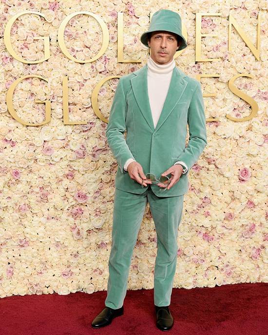 Surprisingly, many men went off-tangent: Andrew Scott wore his tux in baby blue while Jeff Goldblum did sea green; as did Jeremy Strong, wearing his velvet sage tux with a bucket hat and aviators. Colman Domingo flirted with a giant bow by Valentino.