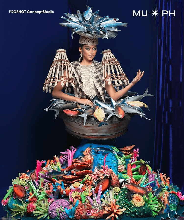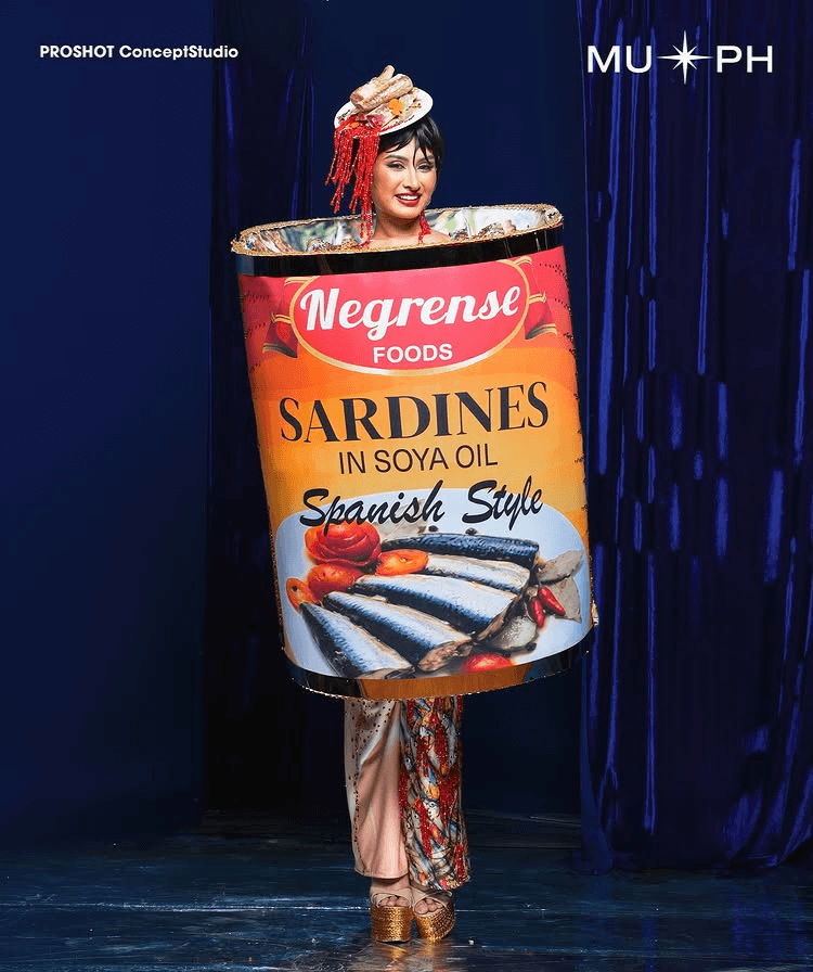 Iloilo Province’s Nicklyn Jutay showcased Angel Wing Clam, locally known as Diwal, which is a celebrated delicacy in Panay. Alexandria Colmenares of Negros Occidental deviated a little from a mystical-looking costume and wore a sardine-inspired costume to take pride of the province's thriving sardine industry.