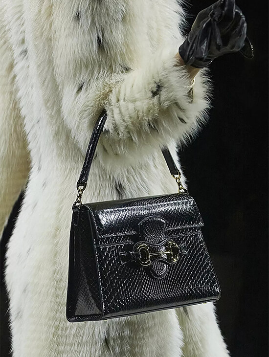 Demna’s Gucci did not begin on the runway. It began with La Famiglia, a portrait-driven visual narrative introducing archetypes of “Gucciness.” Familiar codes—bamboo, Horsebit, monograms—were not erased but refracted.