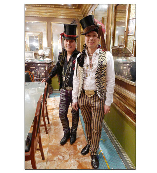 CV: Of course, for big events, advanced planning is needed. We try to work around a theme, like, say, Japanese, so we had to look through our obi stash to have some made into suits for a Red Charity Gala. Or opt for traditional Japanese hakama trousers and haori kimono coats but wear them with white dress shirts and bowties like we did for a Tatler Ball.