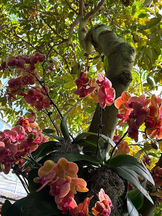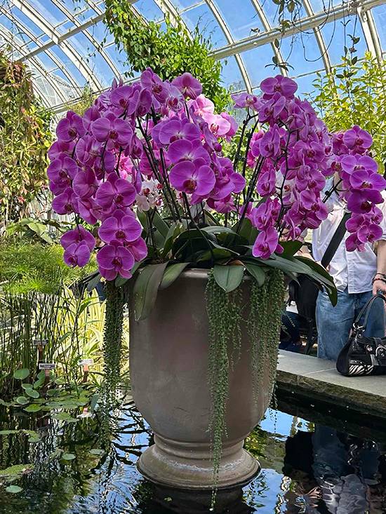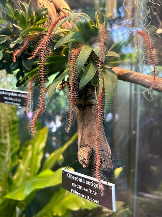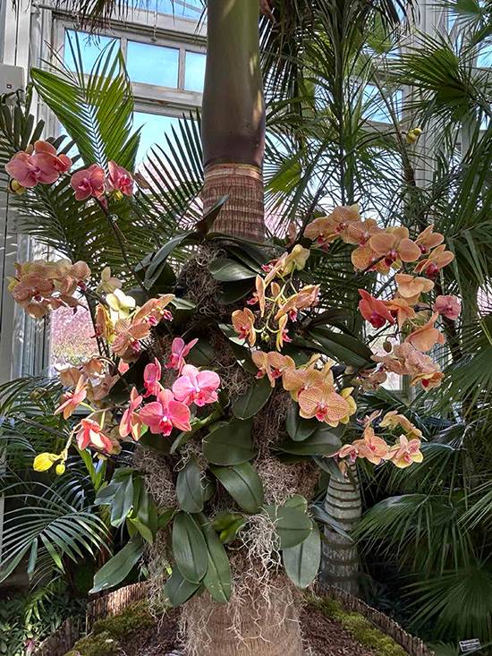 A section at the show directs guests on the three features that make a flower an orchid. First are the merged male and female parts called the column; second is the solid, sticky pollen called pollinia and lastly is a modified petal known as the labellum or lip, where insect pollinators land. While I was grateful to have learned about these details, I was simply lost in amazement and contentedly immersed in the tropical rainforest atmosphere of the Haupt Conservatory all throughout the visit.