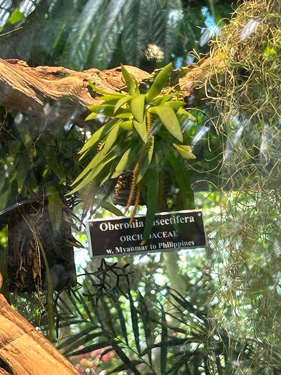 I took particular interest in the endangered orchids. I was impressed to have found out that two rare varieties of orchids come from the Philippines, with the rest coming from Brazil, Mexico, Peru, Thailand, etc. Oberonia setigera and oberonia insectifera are two rare orchid species indigenous to the Philippines. Displayed like priceless diamonds in an upscale jewelry store, these one-of-a-kind genera rest on specialized glass encasements, where they are protected from the elements. It was quite a challenge to scrutinize the orchids inside the glass case and read their labels, since most guests were curiously ogling them; we had to patiently wait for our turn.