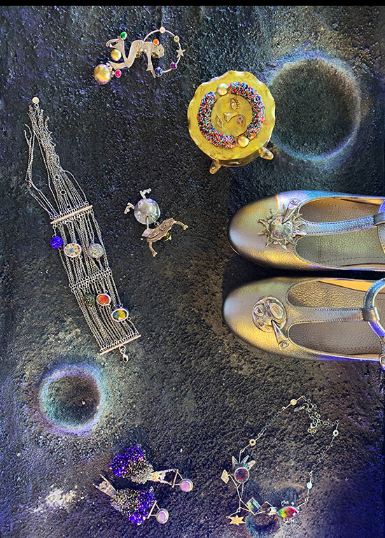 Small wonder that the jewelry and shoe line that Lilianna and Alexie create are equal parts whimsy and serious art, sculptural and fun, beautiful and crazy. And they are so appealing to me, as they are to Lilianna’s mom.