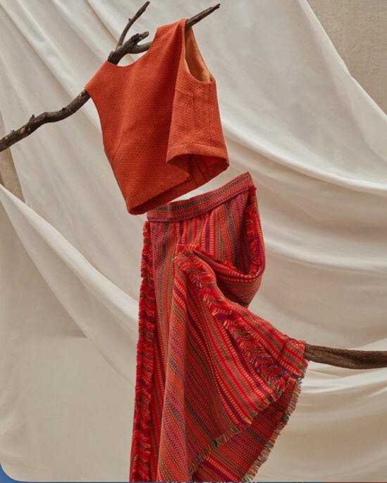 - Prioritize fabrics from natural fibers, deadstock, offcuts, and local weaves from different communities.