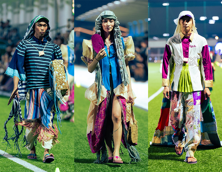 For heritage to stay alive, it has to be part of our daily lives. And it was certainly ever-present and ever-inspiring at Palaro that evening as Len Cabili, Carl Jan Cruz, Hannah Adrias, Glyn Alley Magtibay, Renz Reyes, and Jo Ann Bitagcol, six forward-looking designers, reconceived the terno, the balintawak, the kimona, and barong as we have never seen them before—through the prism of sport and movement.