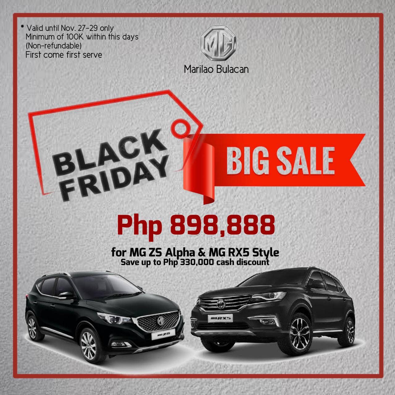 A brand new car for less than a million? Sign us up! MG Philippines Marilao Bulacan is offering a Black Friday Sale on their MG ZS Alpha and MG RX5 Style for only ₱898,888 each!