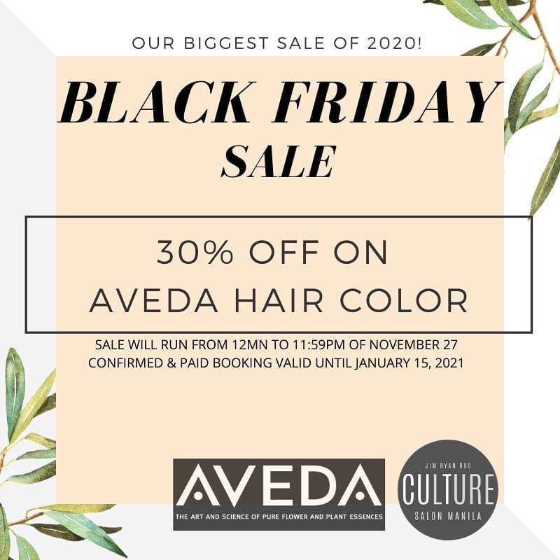 Who here hasn't been to a salon since the quarantine? Who here needs their hair color retouched? Good news: Culture salon is having their biggest sale of the year with 30% off on Aveda Hair Colors for one day only. On November 27, be sure to call them at (0917) 1931191 and complete your transaction to secure a slot. No need to worry about using it on the same day because it's transferable and you can avail it until January 15, 2021!