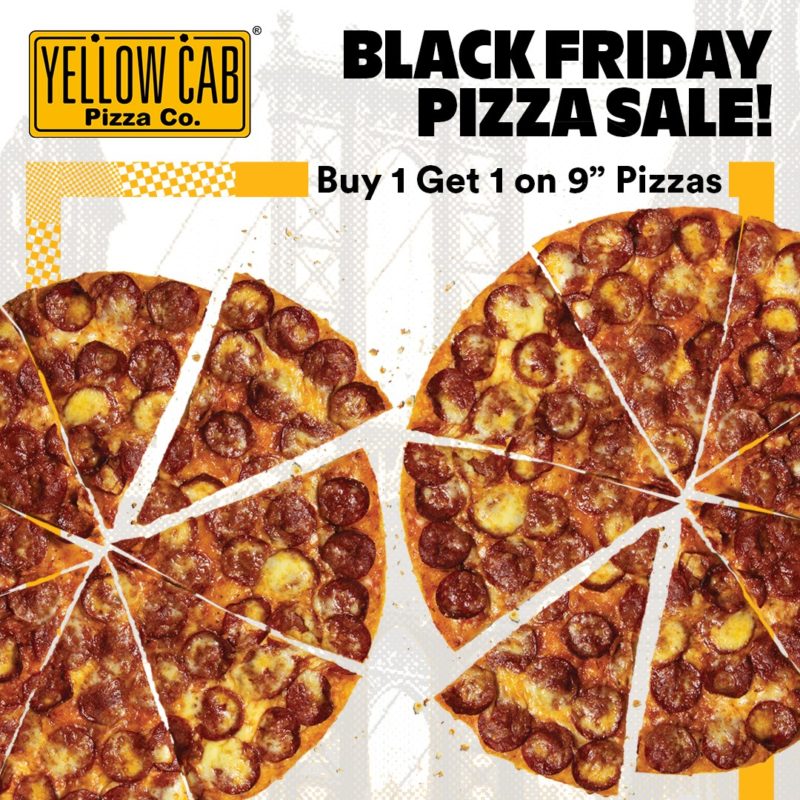 What's better than a box of pizza? Two boxes of pizza! Yellow Cab is having a Black Friday Pizza sale on Friday, November 27, where you can get two (2) 9” Classic and Signature Pizzas.
