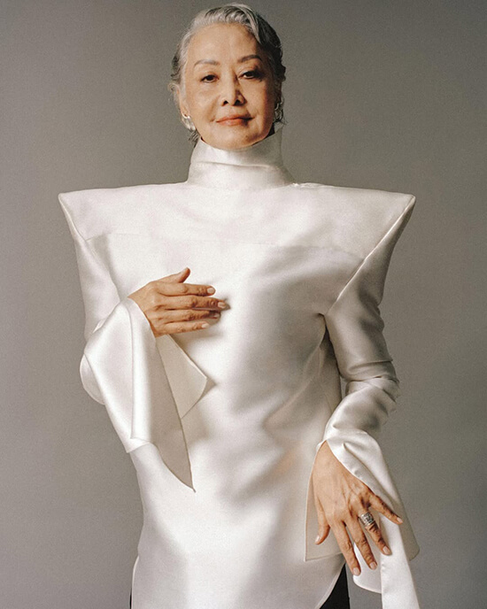 Lulu Tan Gan has maintained a poised, youthful presence over decades in the fashion industry. Her personal looks are always of the moment without being in-your-face trendy, following the arc of her fashion career that started with easy, stylish knits favored by her jet-setting clientele then evolving to a fusion with piña which she has modernized in design and application. This constant innovation coupled with her mentoring of young designers has kept her ageless and relevant.